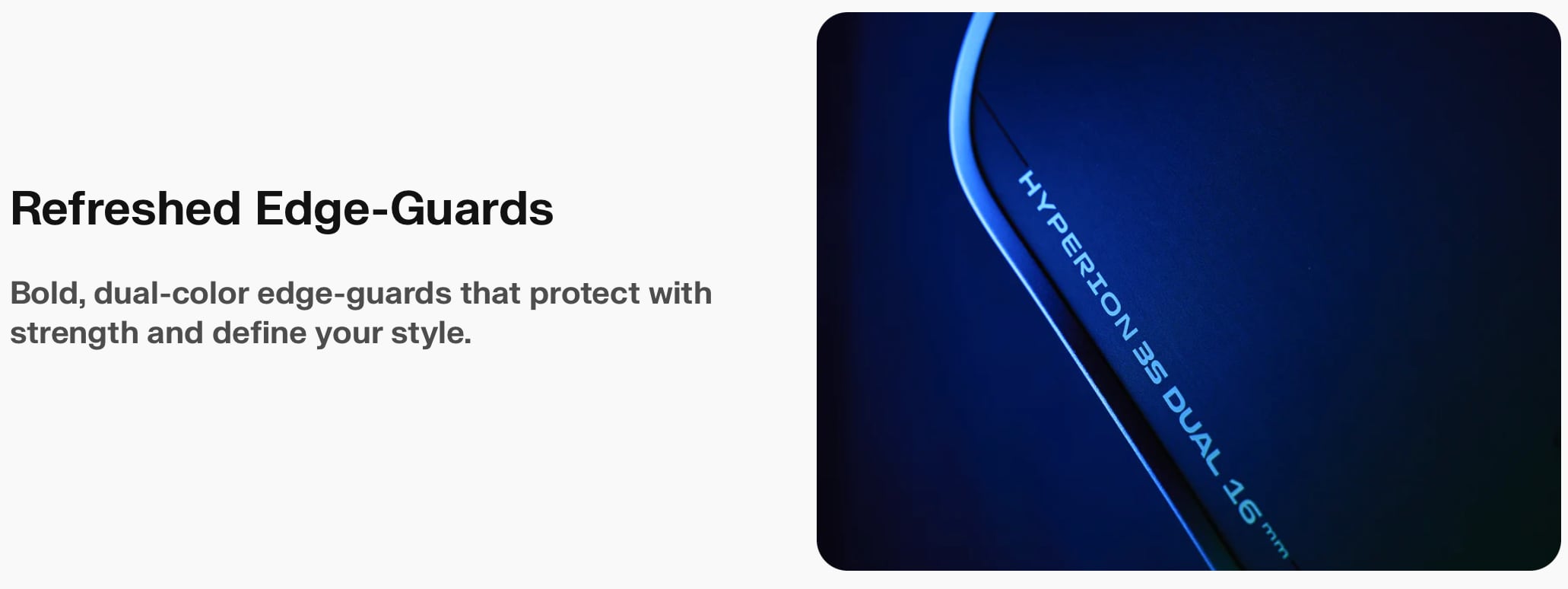 このバージョンでは、ティールとパープルの新しいデュアルカラーグラデーションエッジガードも備えており、パドルを保護する新鮮な外観を提供します。
