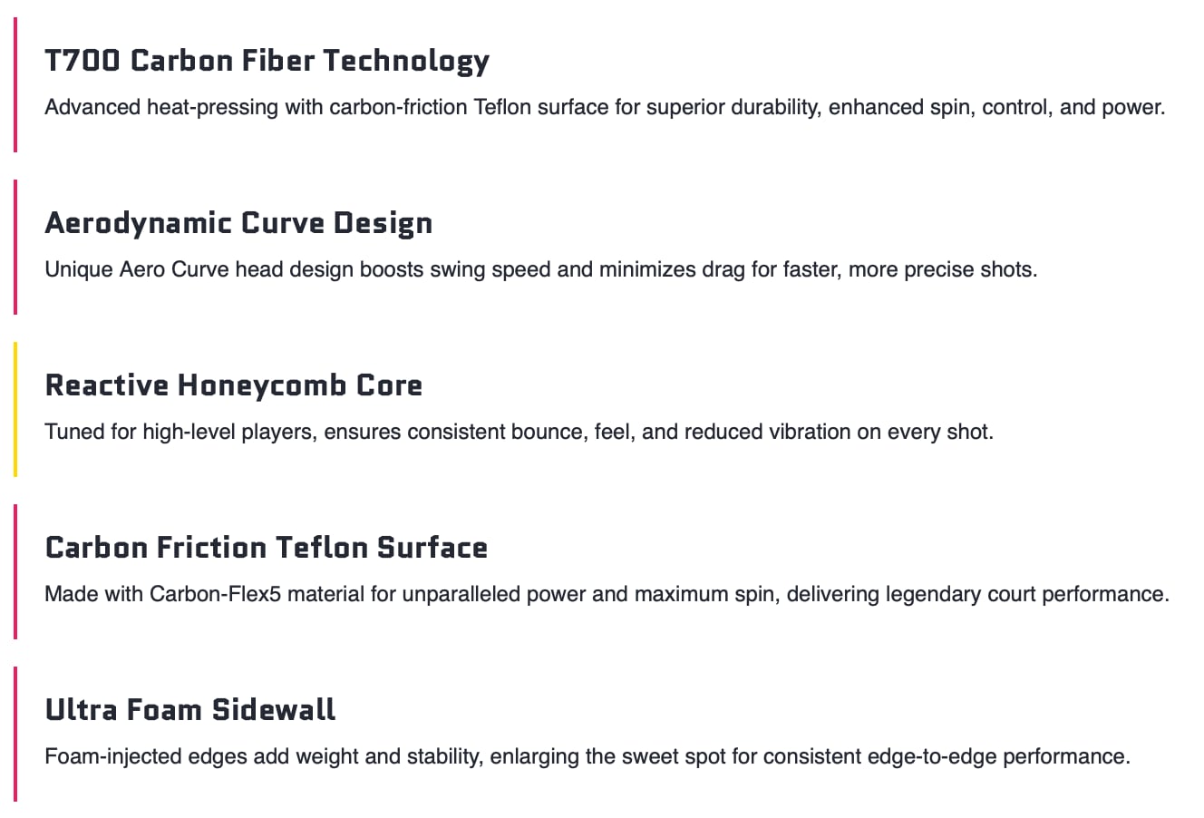 カーボン摩擦テフロン表面を備えた高度な熱プレスにより、優れた耐久性、強化されたスピン、制御、およびパワーを実現しました。