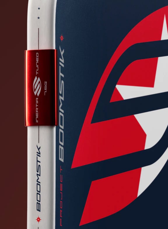 Project Boomstikは、MOIチューニングシステムも導入します。これは、箱から出してすぐに、最高のスイートスポットとバランスを備えたエリートパフォーマンスを提供する新しいパドルテクノロジーです。これは、エッジガードにクランプされた精密に設計された重りと質量分布のバランスをとる半永久的な周囲重み付けソリューションを含む全体的な設計アプローチです。重量を私たちが望む場所に正確に置くことによって-パドルの外側の領域に向かって質量をシフトし、慣性モーメントを増やす-それはオフセンターヒットの間にパドルを安定させます。結果は明らかです:ネットの上により多くのボールを得るのに役立つ、より大きく、より寛容なスイートスポット。