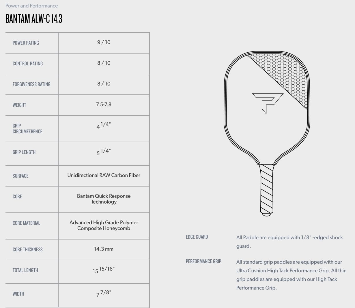 Paddletek BANTAM ALW-C 14.3mm MLP ピックルボールパドル