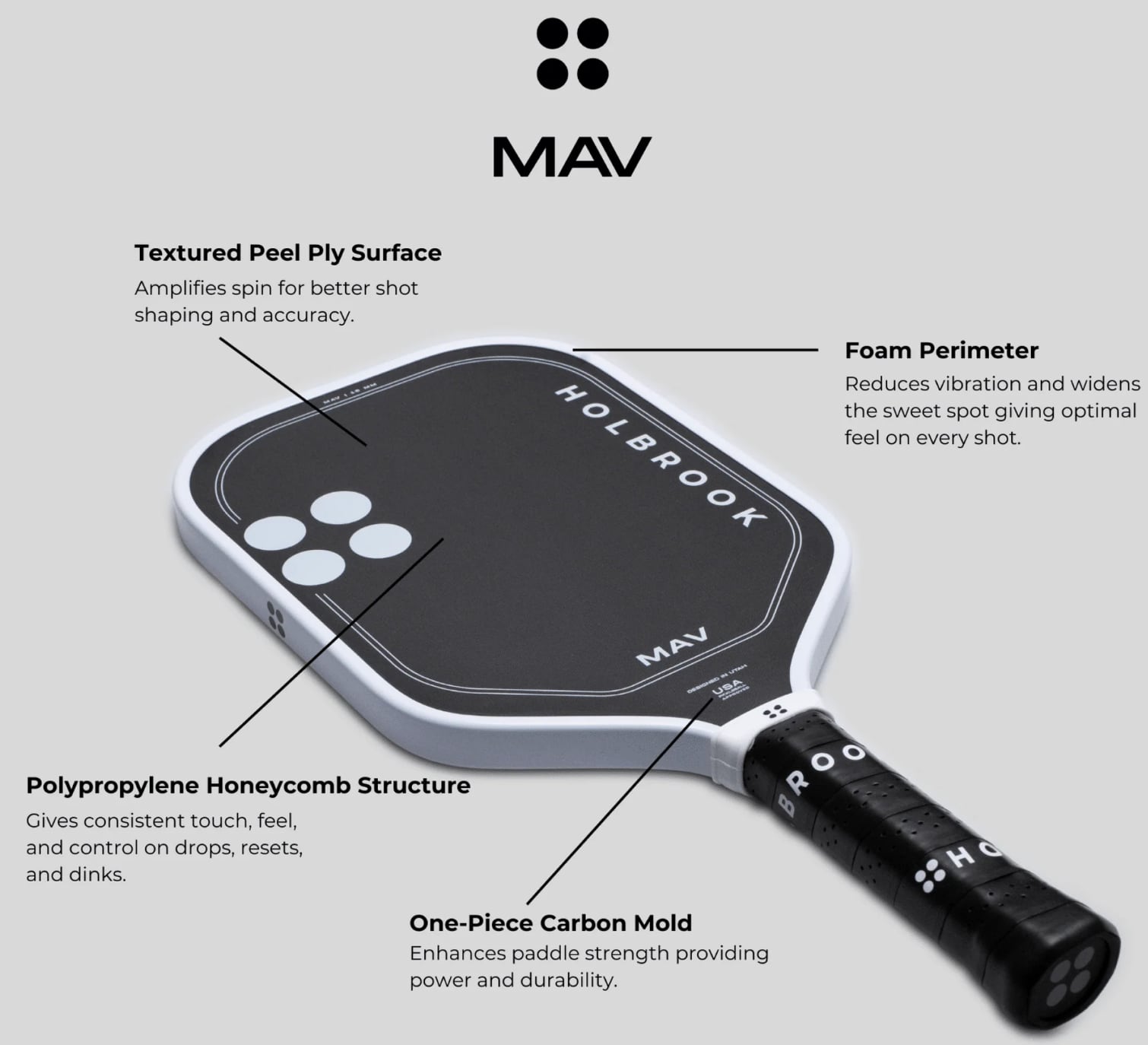 Mavは、完璧にバランスの取れたオールコートパドルでゲームを向上させる準備ができているプレイヤー向けに設計された、スイスアーミーナイフのパドルです。コントロール、パワー、スピンの洗練されたブレンドを実現するよう設計されたMavは、コートのあらゆるエリアで信頼できるパフォーマンスを提供します。ネットでディニングしている時や、プレッシャー下でリセットしている時、あるいはベースラインから走行している時でも、このパドルは、すべてのラリーで自信を持てるように設計されています。