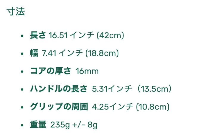 長さ 16.51 インチ (42cm)