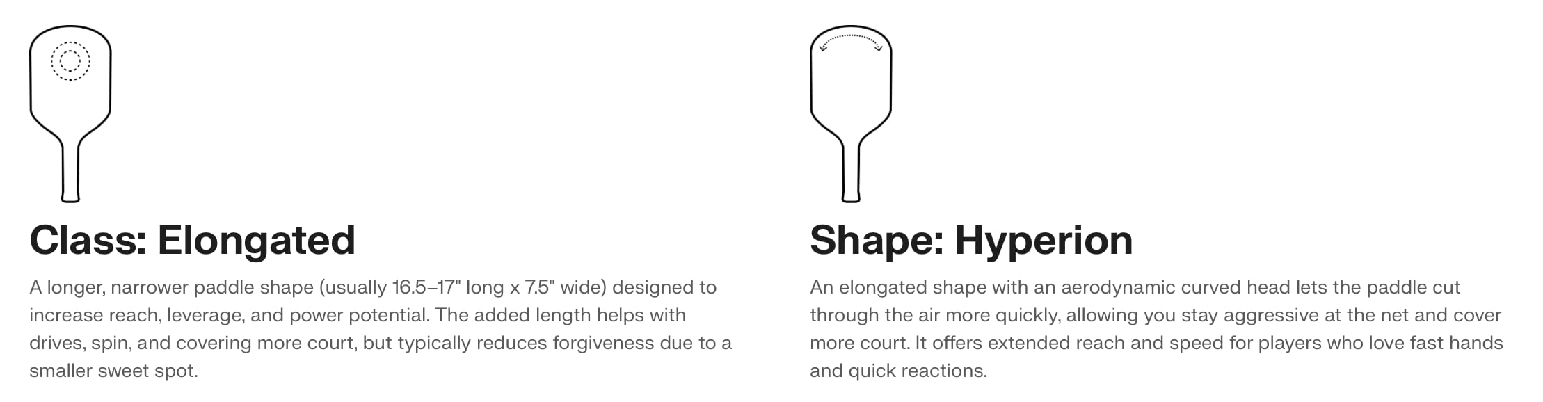 ハンドスピードやリーチの拡張、迅速な反応を求めるプレイヤーのために、Ben Johns Hyperion Pro VはJOOLAの象徴的なエアロカーブ形状と細長いプロファイルを組み合わせています。空気をより効率的に切り抜けるよう設計された空力パドルヘッドは、ネット上でのアグレッシブさを保ち、コートをカバーしやすいパドルになります。