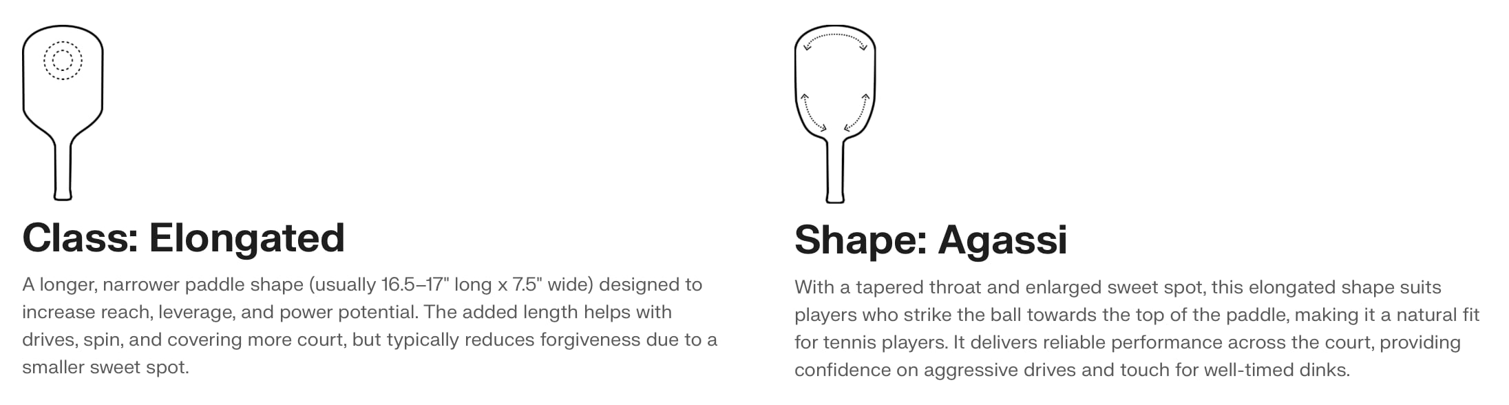 Graf Pro V 16mmはAgassi Pro V 16mmと形状が似ていますが、グリップ周囲径が狭く4.125インチで、より小さな手のプレイヤーで、より強く安定したグリップ感を求め、不要な振動を最小限に抑えるのに最適です。また、Pro Vラインアップで洗練されたシーサイドグリーンのカラーバリエーションを備えた唯一のパドルでもあります。