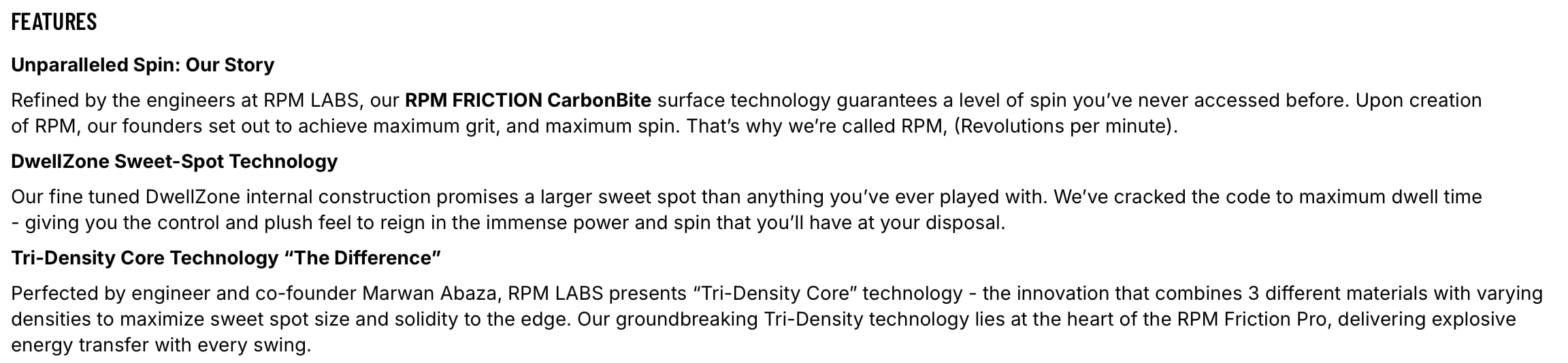 RPM Friction Pro V2は、新技術を活用し、2025年のパドルであるRPM Friction Proを改良しました。V2は、RPMの新しいAxial Carbon Layupを搭載し、強化されたEVAフォームリングと組み合わせて、エリートなスピンとパワーを生み出し、市場で最大のスイートスポットを強化します。世界ランキング上位10位に入るプロピクルボール選手であるジェームズ・イグナトウィッチが共同設計・製作したRPM Friction Proラインは、プロフェッショナルで高度なプレイを念頭に置いて設計されています。RPM LABSは、CarbonBite Surface、Axial Carbon Layup、Tri-Density Core技術を組み合わせ、すべてのプレイヤーに革命的なパフォーマンスを提供しています。