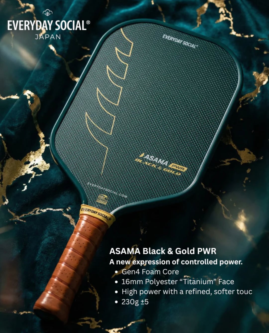 EVERYDAY SOCIAL® ASAMA BLACK & GOLD PWR GREEN (16MM) ピックルボールパドル